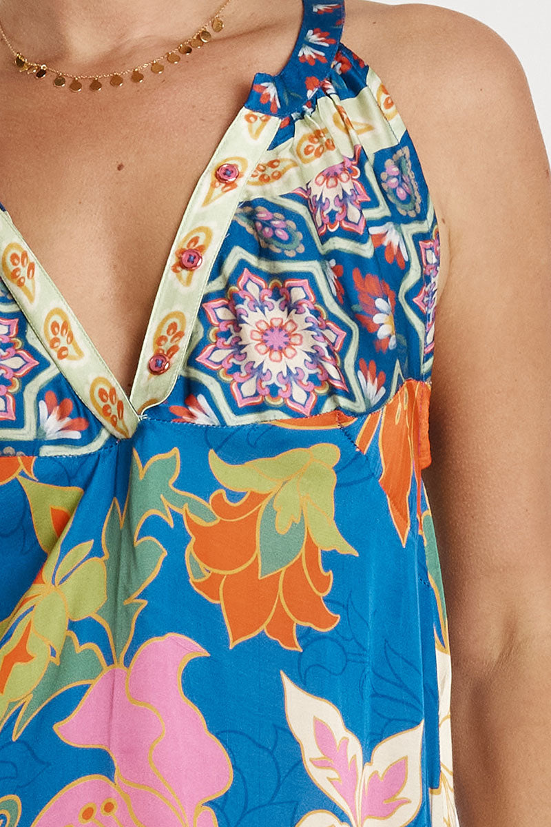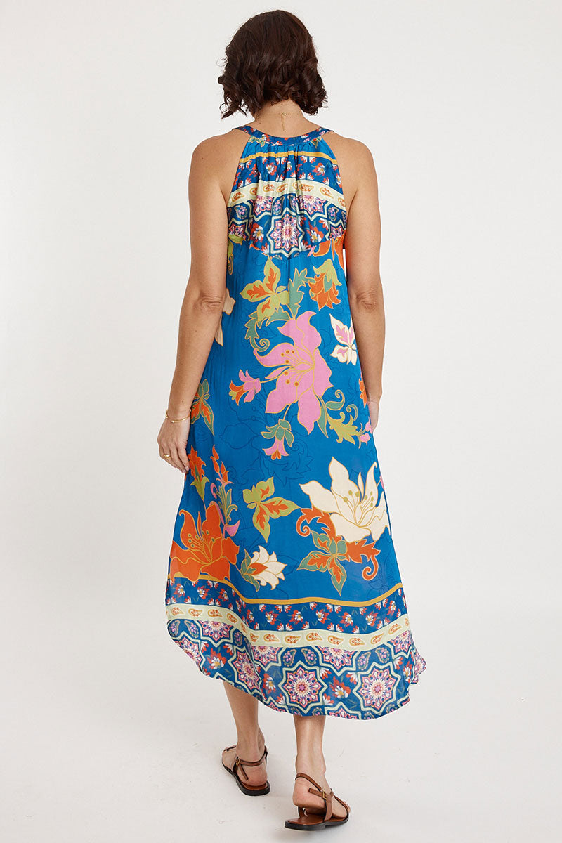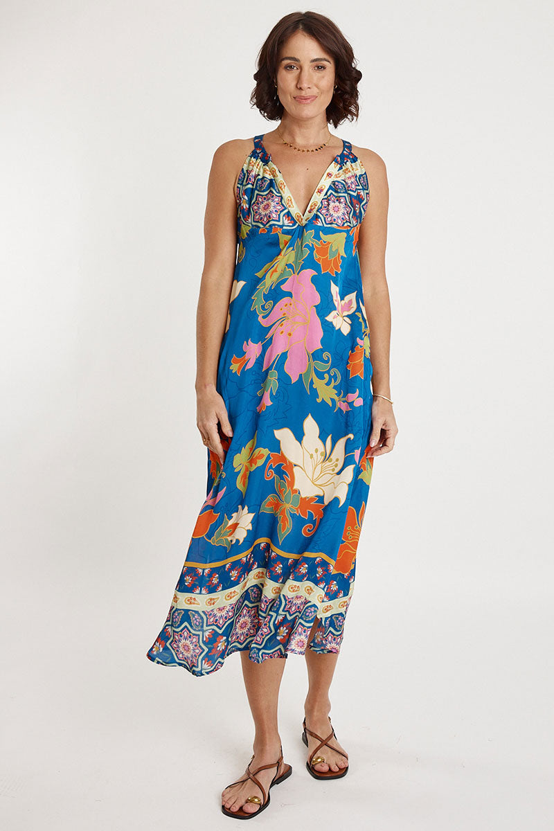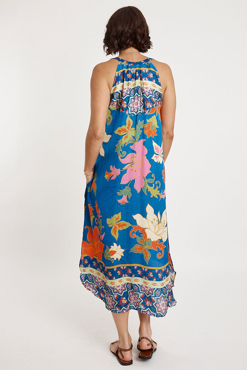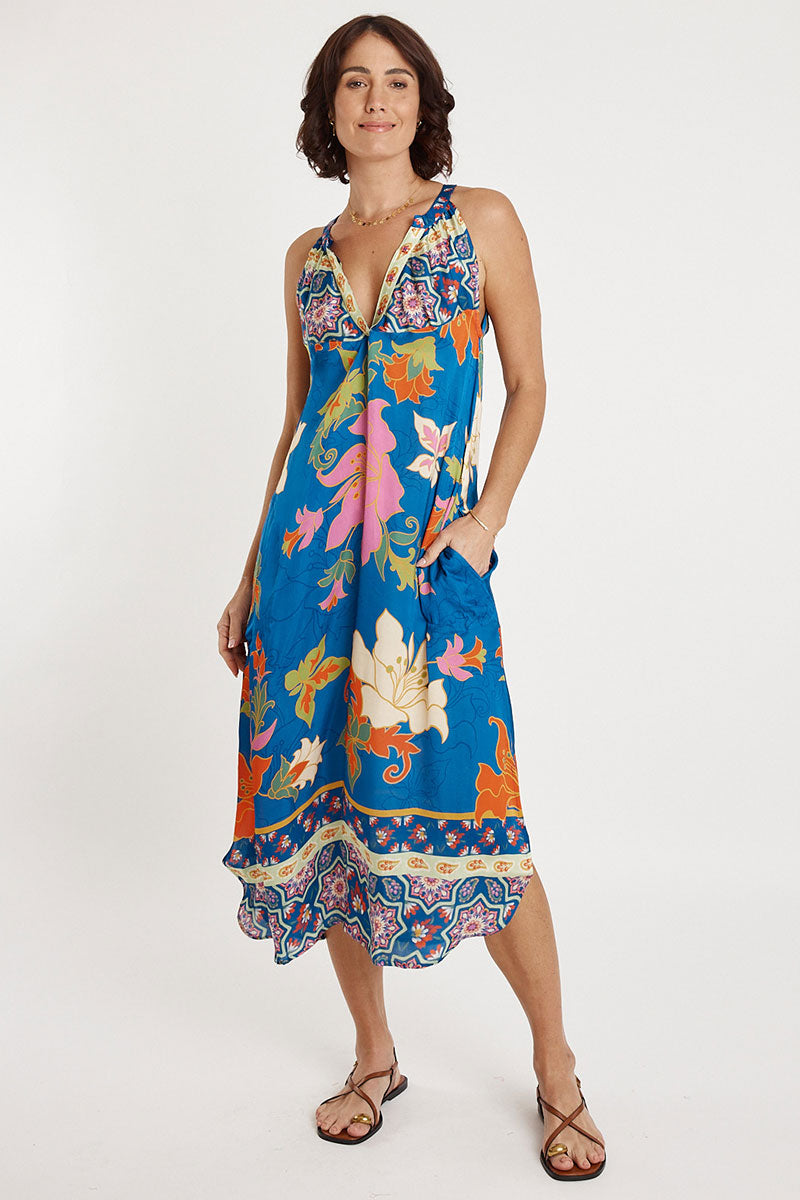 Crafted from 100% luxe viscose modal, this elegant floral dress feels lightweight and soft against the skin. Printed with a black background it features divine flowers in shades of pink, orange, cream and teal that are both part oriental, part retro.