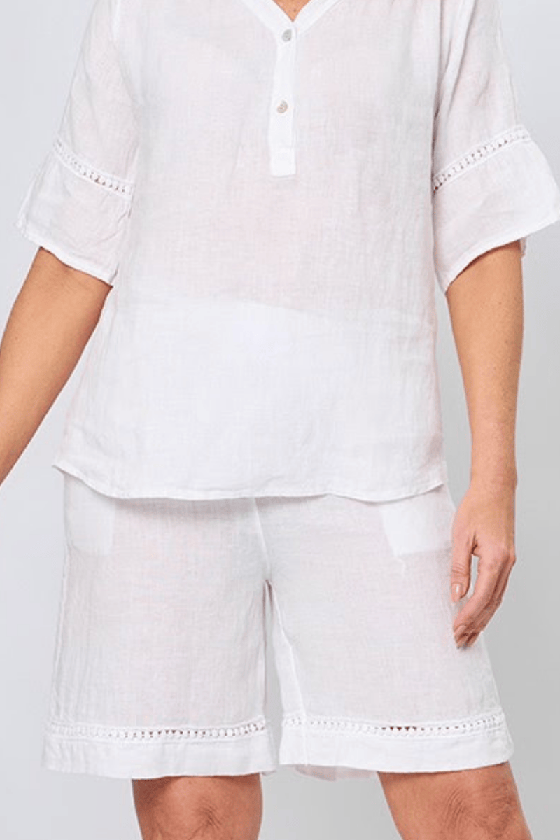 La Strada Italian Linen Long Short White Lace
