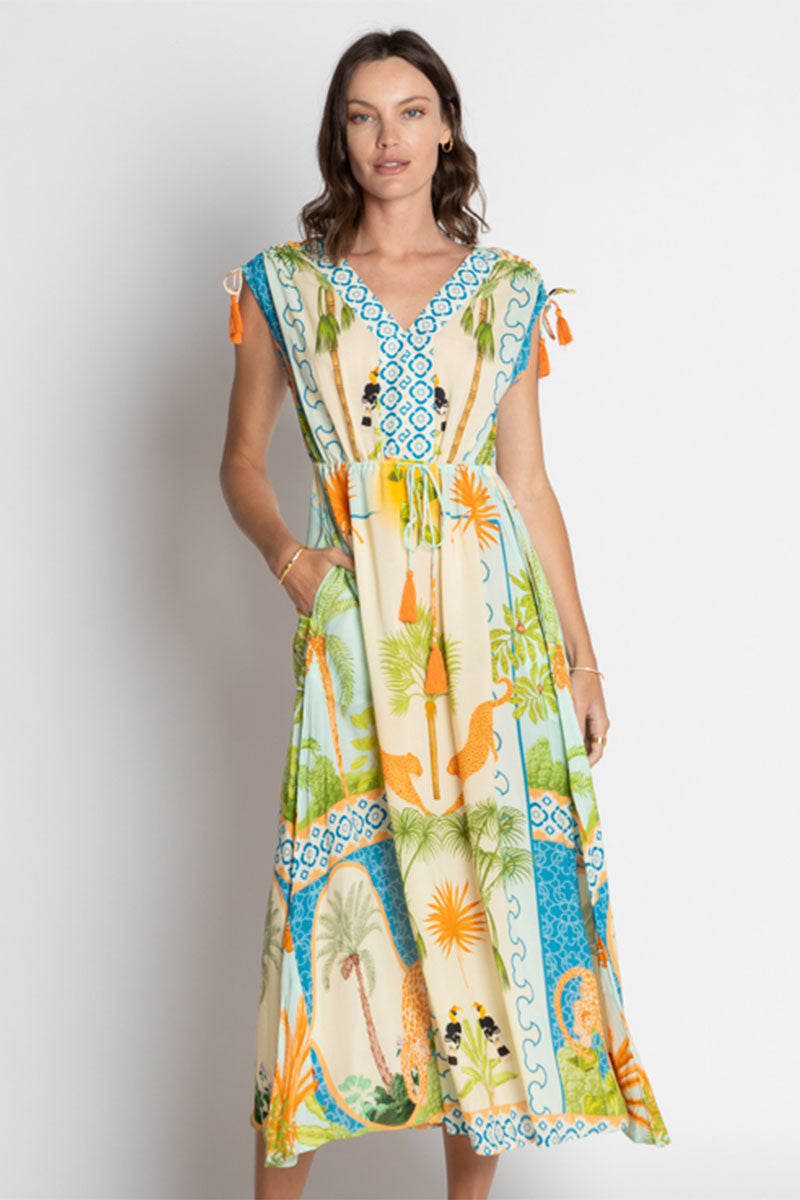 Step into effortless style with the LulaSoul Kahala Midi Dress, a timeless piece designed in Australia and crafted from 100% viscose modal for a lightweight, breathable feel. Featuring a flattering V-neckline, adjustable drawstring ruching on the shoulders, and a cinched waist tie, this boho-chic midi dress offers the perfect blend of comfort and elegance. The relaxed fit over the tummy and hips, side pockets, and flowing A-line skirt create a versatile silhouette that flatters every body shape. Falling below the calf, the Kahala Midi is your go-to summer dress, resort wear, or holiday outfit—ideal for casual days, beach strolls, or dressed-up evenings. Discover the easy-wear charm of LulaSoul’s Kahala Midi, designed for women who love fashion that’s both stylish and practical.
