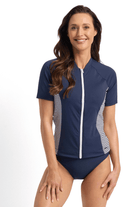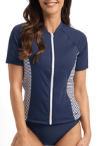 Jantzen Anchor Stripe Short Sleeve Mast Rashie - Navy