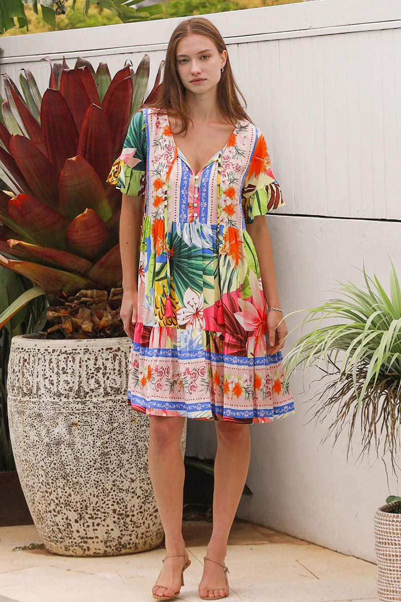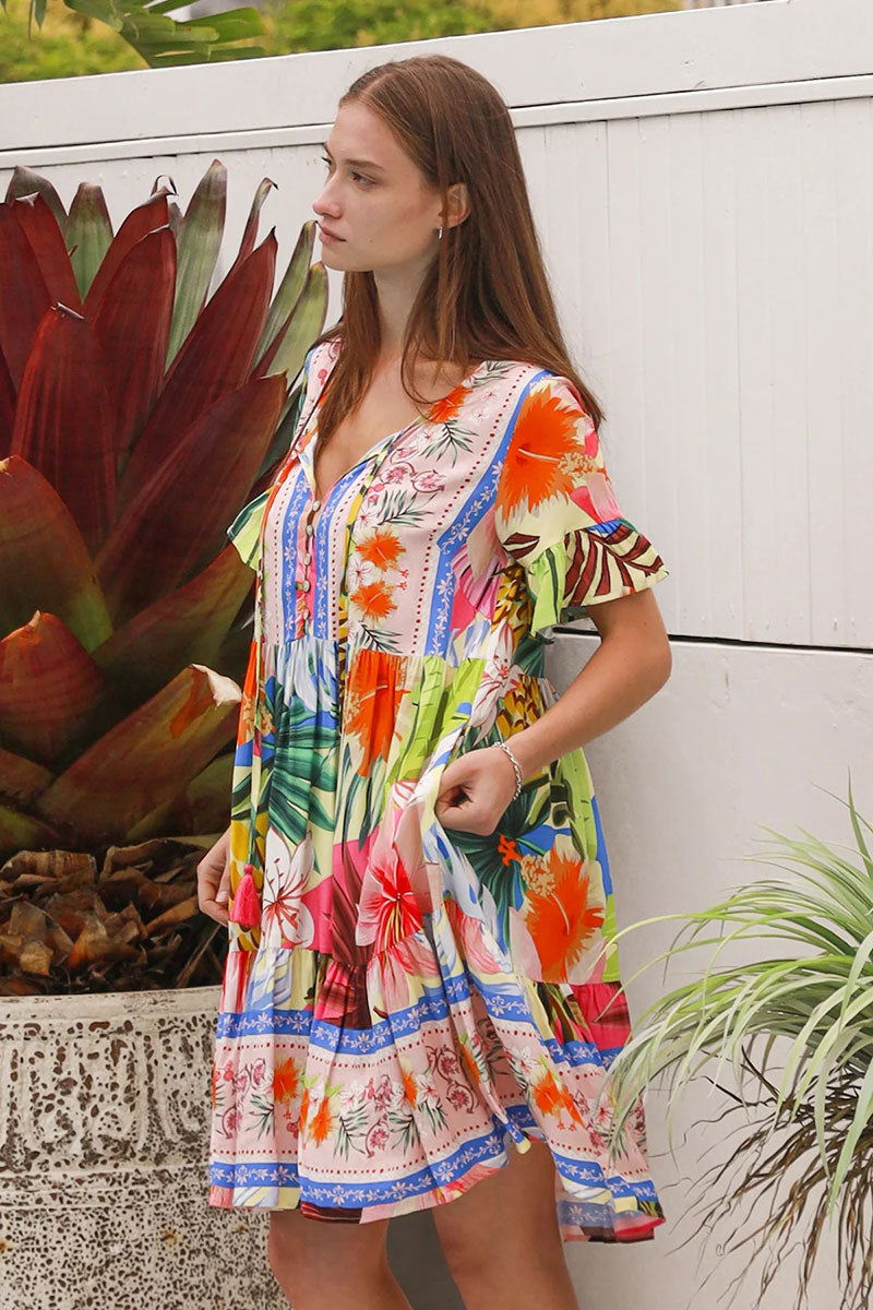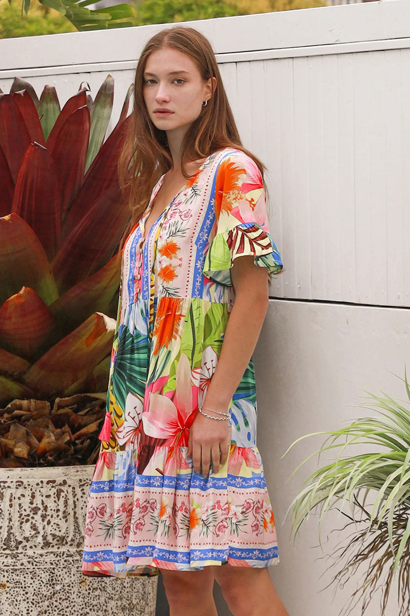 Salty Palm Tiara Blue Pink Mini Dress