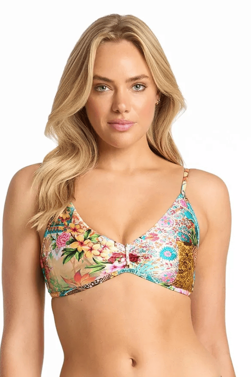 The Papaya print does not disappoint. Shop this collection of swimwear, bikini's, sarongs and our beautiful string maxi dress. The fabric is luxuriously soft with a slight shimmer and viabrant colours.