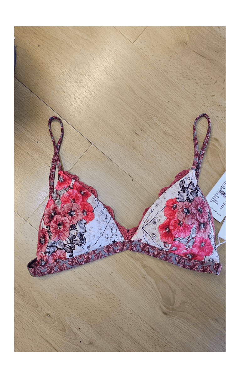 Fixed Triangle Bra features the beautiful Water palace soft hues of Red