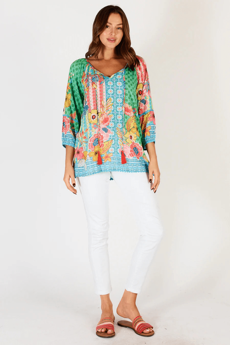 Experience effortless elegance with the Lula Life Miranda Top Sea. Its relaxed fit flatters the body, making it the perfect addition to your wardrobe. Wear it to any occasion and expect a plethora of compliments, just like on Melbourne Cup day. This top will elevate your style and leave you feeling confident and beautiful.