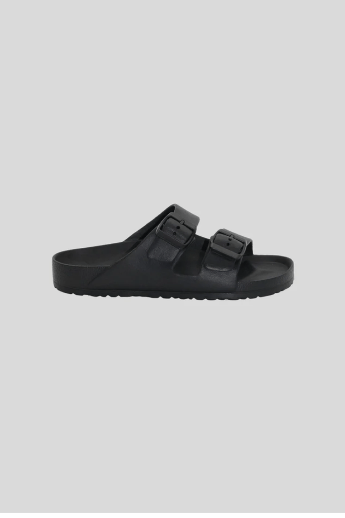 Comfort meets sleek. Super soft flex sole featuring a double buckle closure.