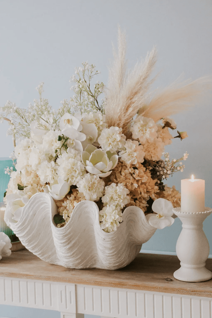 Transform your space into a seaside oasis with the La Vida Clam Shell Giant White.