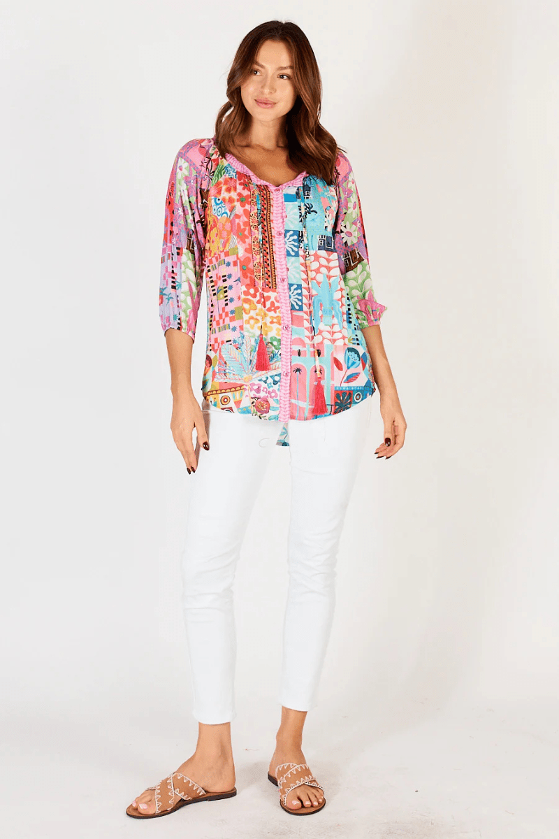 Introducing the Lula Life Marquita Top - your go-to for fun and playful fashion! Made of soft cotton rayon, this button through top features a flattering curved hem that looks great on any body shape. Get ready to turn heads with this tropical toucan inspired print and stylish piece!